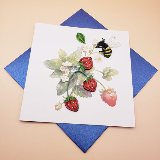 Strawberries and a Bee | Quilled Greeting Card - Handmade