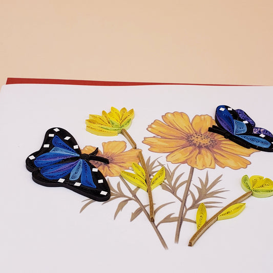 Pair of Butterflies with Yellow Flowers Quilled Card