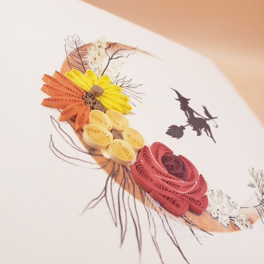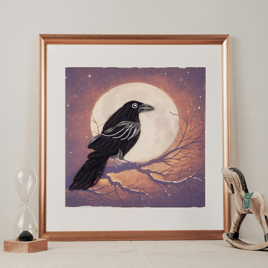 Crow in Full Moon | Quilled Greeting Card - Handmade