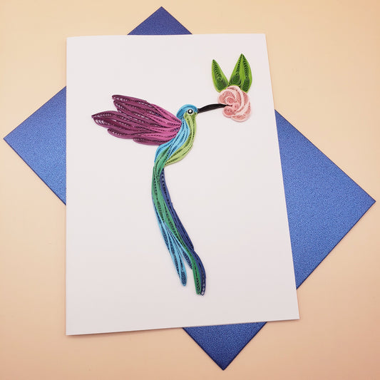 Long-tailed Sylph Hummingbird | Quilled Greeting Card